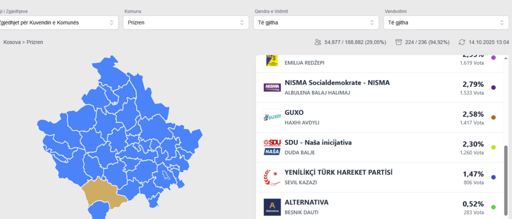KQZ për Kuvendin Komunal të Prizrenit ka numëruar 94,92% e vendvotimeve