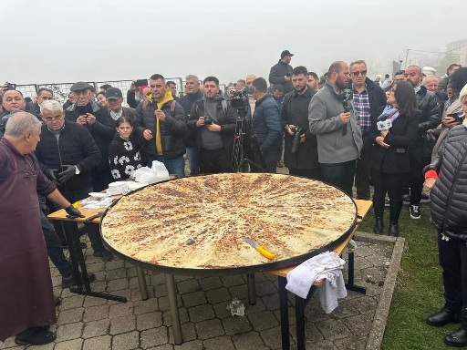 “Kuzhinieri” Totaj tregoi se si është marrë me përgatitjen e kësaj flije, që është më e madhja që gatuhet në trojet shqiptare dhe që, sipas tij, sot peshonte 100 kg.