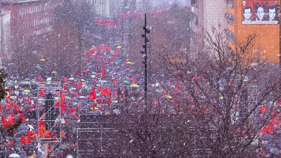 Marshimi i cili kulmoi në sheshin “Skënderbej” grumbulloi qytetarë të shumtë dhe politikanë, ndërkohë që valëviteshin flamuj të Ushtrisë Çlirimtare të Kosovës, të Kosovës dhe të Shqipërisë.