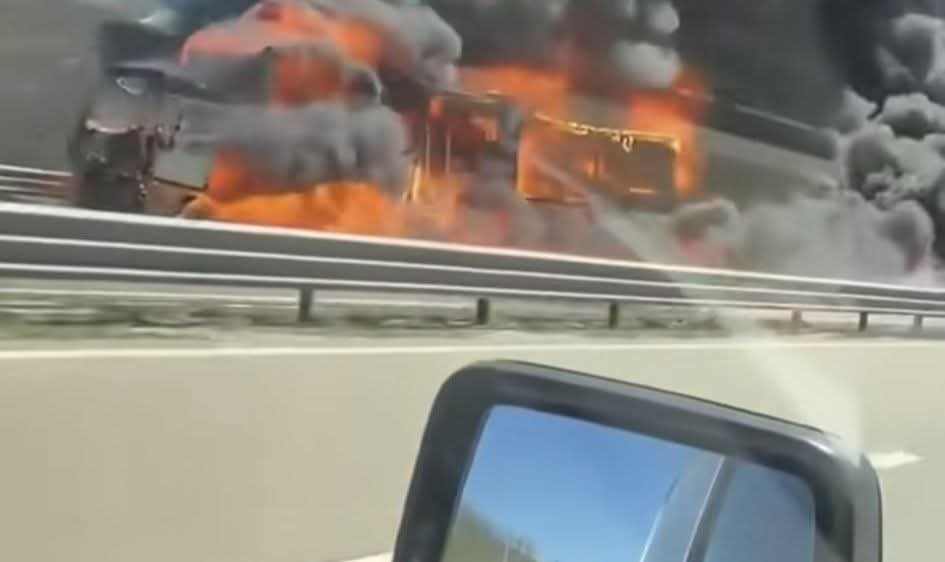 Digjet kamioni në autostradën “Ibrahim Rugova”, pramje dramatike