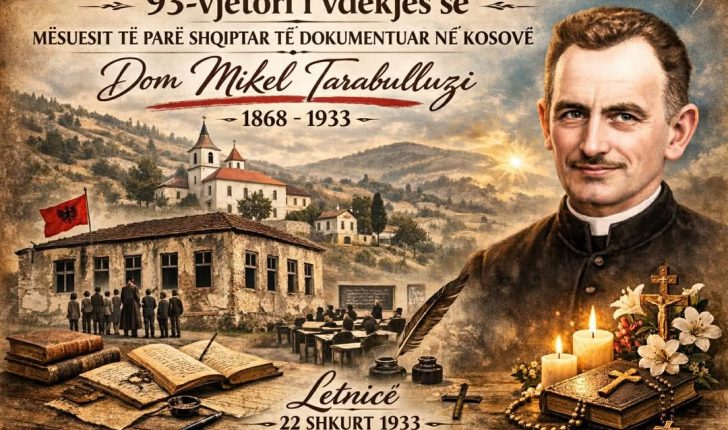 Në 93-vjetorin e kalimit në amshim, përkujtojmë Dom Mikel Tarabulluzin, meshtarin, mësuesin dhe atdhetarin që la gjurmë të pashlyeshme në historinë e arsimit dhe të Kishës në Kosovë.