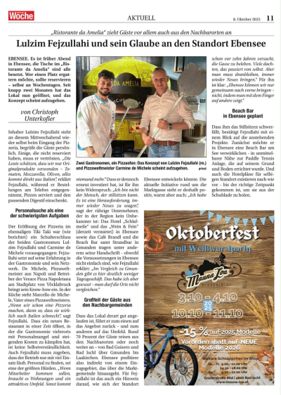 Në hyrje, Unterkofler shkruan: “Është mbrëmje e hershme në Ebensee, dhe tavolinat në ‘Ristorante da Amelia’ janë të gjitha të zëna. Kushdo që dëshiron të sigurojë një vend duhet të bëjë një rezervim, edhe gjatë ditëve të javës. Restoranti është hapur qe gati dy muaj, dhe koncepti duket se po funksionon.”