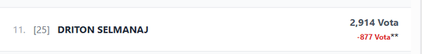 Duhet theksuar se nga procesi i deritanishëm i rinumërimit të votave, Selmanaj ka minus 877 vota.