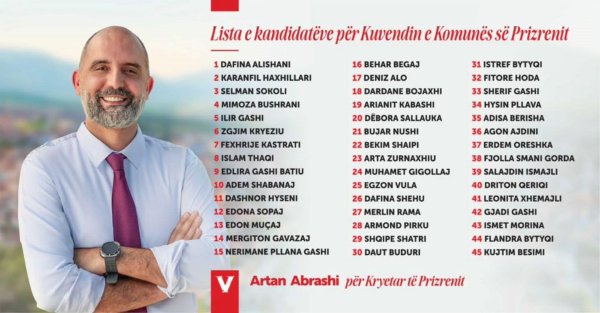 Komisioni Qendror i Zgjedhjeve (KQZ) ka publikuar rezultatet preliminare për kandidatët e Lëvizjes Vetëvendosje për Kuvendin Komunal të Prizrenit, pas numërimit të 80 për qind të votave.