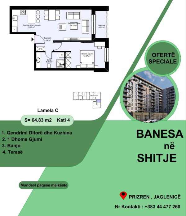 • 1 banesë në Kompleksin Prizreni i Ri