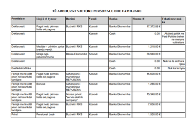 Po ashtu, të hyra të konsiderueshme janë deklaruar edhe nga anëtarët e familjes që jetojnë në bashkësi familjare, ku fëmijët kanë realizuar mbi 39,000 euro nga angazhime në agjenci marketingu, biznes privat dhe buxheti i shtetit.